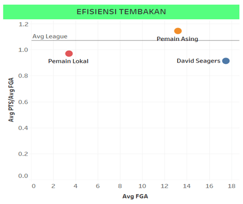 Walau demikian, tidak semua pemain asing yang menghasilkan produktivitas angka diatas rata-rata liga memiliki efisiensi tembakan diatas rata-rata liga. Pemain asing yang telah diganti oleh Bima Perkasa Yogyakarta, David Seagers, dapat menjadi contoh dalam kasus tersebut.